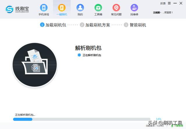 2、也可从选择已下载完成的ROM包,点击“开始刷机”,解析刷机包。 3、下载刷机方案。刷机包解析完成后,会下载符合该机型的刷机方案。请等待片刻即可,然后安装驱动,下载刷机方案的时候,会有自动安装驱动的界面,这时候静静等待即可。(如有提示弹窗,按提示操作)。 4、安装驱动成功以后,界面会有提示,只要按照界面上的方法即可进入刷机模式。