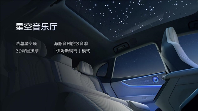 “星空音乐厅”座舱,豪华体验全面升维 走进车内,全球首发的浩瀚星空顶映入眼帘。500颗独立星粒嵌入LV分区调光天幕,一键点亮,专属星座在头顶流转。这项设计在厚度上仅增加1毫米,同时保留87%的能量隔绝与近100%的紫外线阻隔能力。 听觉体验同样被推向新高度。ZEEKR Sound Max音响系统峰值功率4680W,29个扬声器、8个头枕音响、8个座椅振子,配合7.1.4.8全景声布局与杜比全景声技术,让车厢变身移动音乐厅。